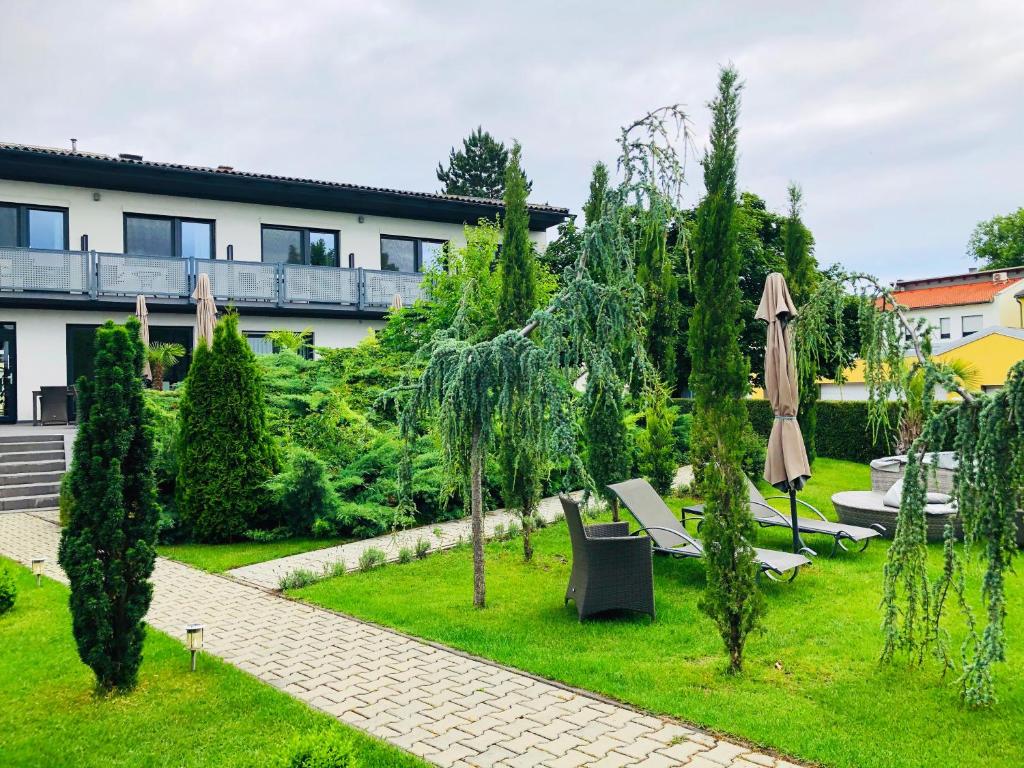 Beachfront Location: Haus Pannonsee in Podersdorf am See offers direct beachfront access, a sun terrace, and a lush garden. Guests enjoy free WiFi throughout the property. Comfortable Accommodations: Rooms feature balconies with lake or garden views, private bathrooms, and modern amenities such as flat-screen TVs and work desks. Family rooms and interconnected rooms cater to all needs. Dining Experience: A coffee shop serves local specialities, fresh pastries, cheese, fruits, and juice. The on-site minimarket provides convenience for daily needs. Local Attractions: Nearby attractions include Mönchhof Village Museum (12 km), Castle Halbturn (14 km), and Esterhazy Castle (36 km). Vienna International Airport is 50 km away. Couples particularly like the location — they rated it 9.5 for a two-person trip. Distance in property description is calculated using © OpenStreetMap Show me more