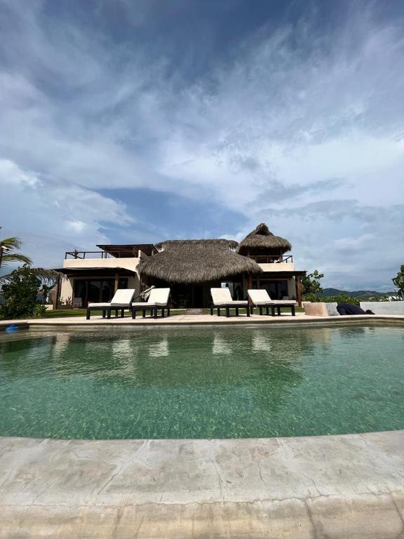 Elegant Accommodation: Casa Lyuu in Bajos de Chila offers a villa with four bedrooms and five bathrooms. The property features a spacious living room, family rooms, and a private entrance. Outstanding Facilities: Guests enjoy an infinity swimming pool, lush garden, and a terrace with sea views. Free WiFi is available throughout the villa. Comfortable Amenities: The villa includes air-conditioning, a fully equipped kitchen, and a dining area. Additional amenities include a barbecue, minibar, and a work desk. Convenient Location: Located 14 km from Puerto Escondido International Airport, Casa Lyuu provides easy access to local attractions. Distance in property description is calculated using © OpenStreetMap