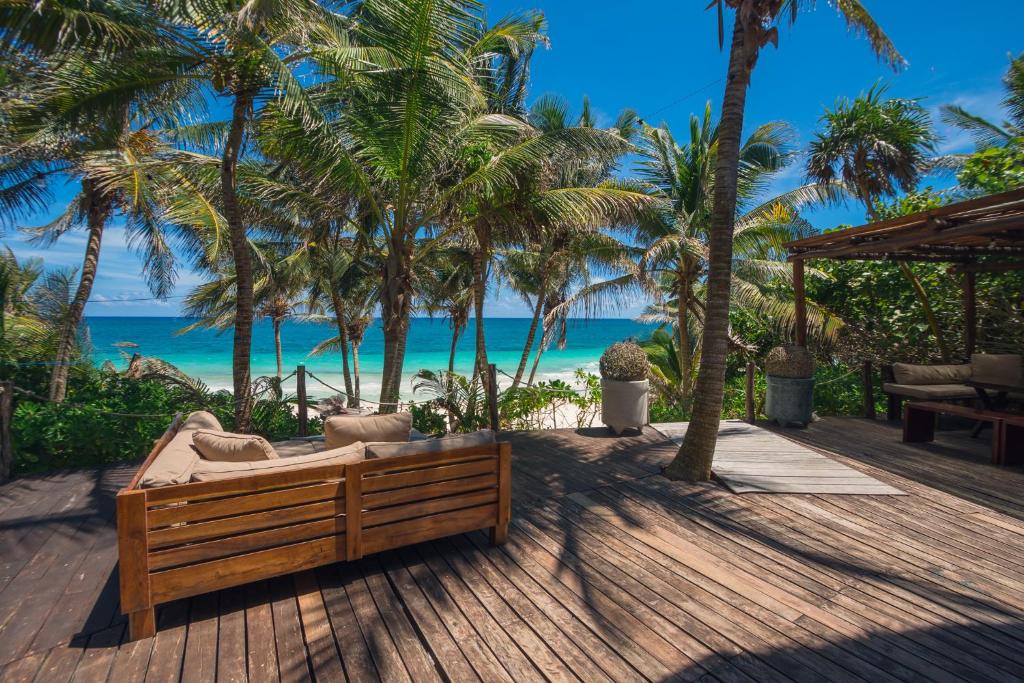 Beachfront Location: Casa Zaba in Tulum offers direct beachfront access with a private beach area. Guests enjoy sea views and a sun terrace, complemented by a lush garden. Comfortable Amenities: The holiday home features air-conditioning, a terrace, kitchenette, balcony, and private bathroom. Additional amenities include a coffee machine, dining area, and free WiFi. Convenient Services: Private check-in and check-out, a paid shuttle service, concierge, and tour desk enhance the stay. Free on-site parking and bicycle parking are available. Nearby Attractions: South Tulum Beach is just a few steps away, while Tulum Archeological Site is 13 km distant. Other points of interest include Sian Ka´an Biosphere Reserve (4.5 km) and Xel Ha (26 km). Distance in property description is calculated using © OpenStreetMap