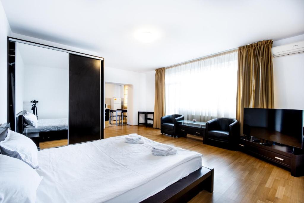 Studio Aviatiei is located in Bucharest, just 1.2 miles from Herastrau Park and 1.8 miles from Ceausescu Mansion. With garden views, this accommodation features a balcony. The apartment also offers facilities for disabled guests. With free Wifi, this apartment offers a flat-screen TV, a washing machine, and a fully equipped kitchen with a dishwasher and oven. Towels and bed linen are featured in the apartment. The accommodation offers an air conditioning, a heating, and a private bathroom. Arcul de Triumf is 2.2 miles from the apartment, while Dimitrie Gusti National Village Museum is 2.5 miles away. Băneasa Airport is 1.2 miles from the property.